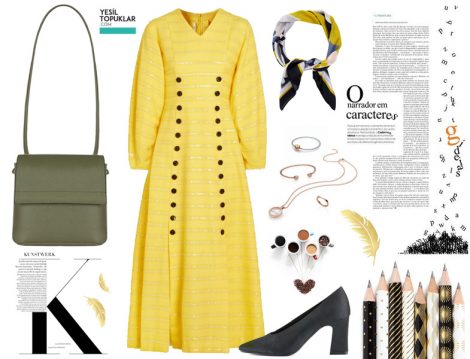 Sezonda şık – spor buluşmasını en iyi yansıtacağınız parçalara ‘Meadowlark’ eşlik edecek. Günlük hayatta, alışverişte, gezmede, hafta sonunda her yerde… Siyah çiçek desenli eteklerinizle sapsarı yağmurlukları deneyin. Hemen hemen her koleksiyonda karşınıza çıkacak sarı yağmurluklar, tesettürlü kadının vazgeçilmezi eteklerle buluşuyor. Bu sapsarı kombine bir çift siyah babet ve çanta iyi gelecek.
