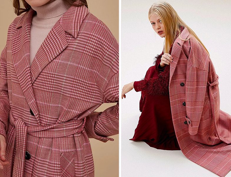 Kayra 2019-20 Sonbahar Kış Pudra Kuşaklı Ekose Kaban