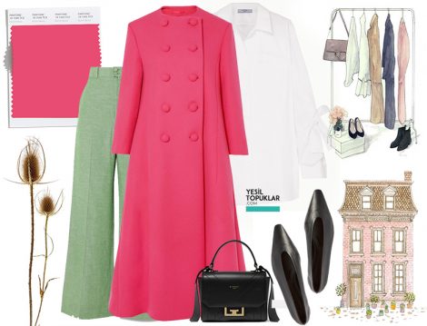 Pembe & Yeşil: İlkbahar yaz sezonundan alışık olduğumuz canlı pembelerin hakimiyeti sonbaharı da ele geçiriyor. Üstelik bu canlı pembenin en yakın ekürisi ise çağla yeşili oluyor.
