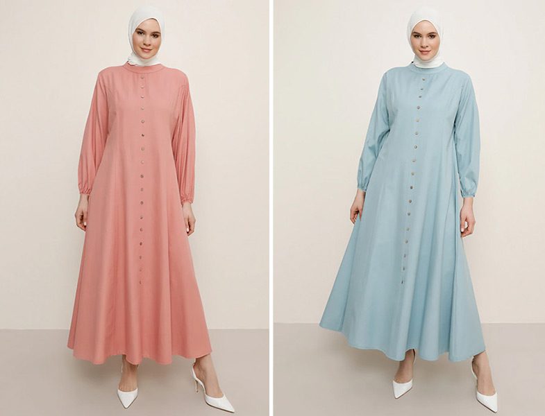 Alia Somon Boydan Düğmeli Elbise – Alia Soft Mavi Boydan Düğmeli Elbise