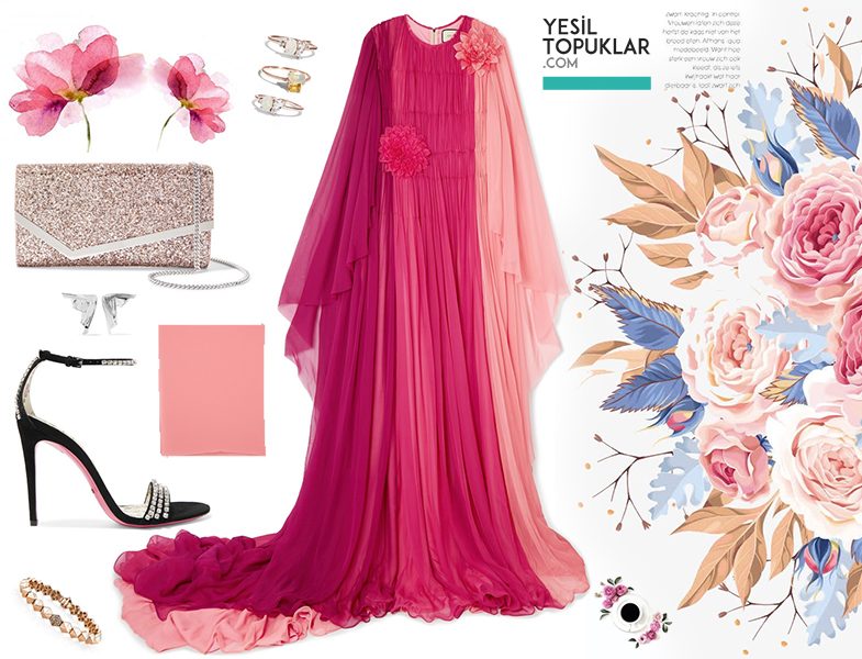 Pembe Şifon Yazlık Tesettür Abiye Elbise Modeli