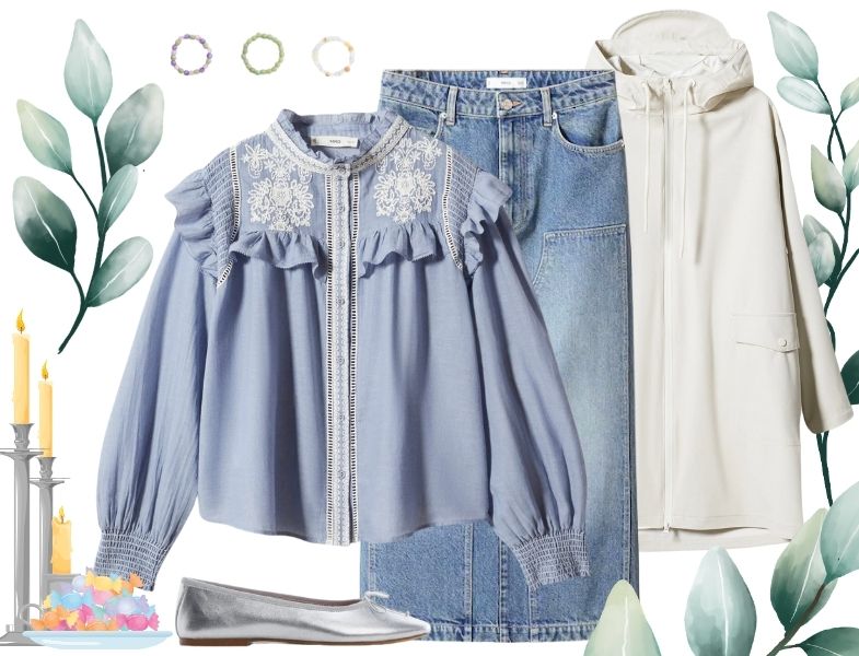 Fırfırlı Gömlek ve Denim Etek ile Bayram Kombini