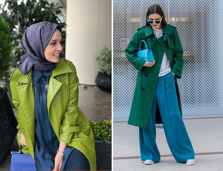Fıstık Yeşili Trenç – Mavi Gömlek (Sena Pektemek) – Yeşil Trençkot – Mavi Bol Pantolon (Dariak Style)