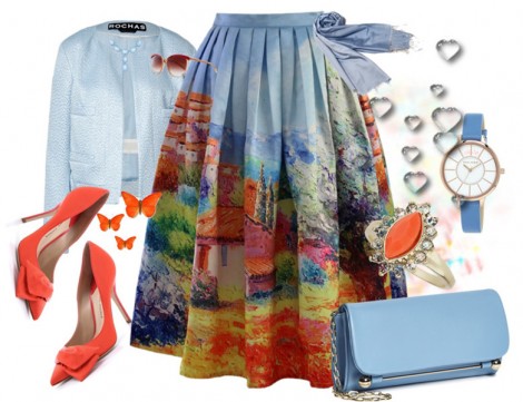 Baskın bir renk karmaşası ile farkındalık oluşturan desenli eteklerde, renk dengesini iyi sağlamak için klasik kurtarıcı parçalar arasında olan nude renkli şalları ve çantaları kombininizde kullanmalısınız. Nude renkli tüm parçaları diğer kombinlerinizde de her zaman kullanabilirsiniz.