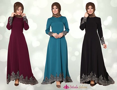 2017 Kış Davetlerine Özel Tesettür Abiye Elbise Modelleri