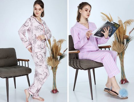 Şıklığından ödün vermeden pijama rahatlığını yakalamak isteyenlerin dolabında yerini alacak tasarımlar son derece kaliteli ve insan vücuduna en sağlıklı biçimde temas eden kumaşlarla hazırlanıyor. Huzur ve güvenle giyebileceğiniz ve cildiniz için de sağlık açısından uygun olacak yumuşacık pijamalar kaşındırmayan kumaşı, sıkmayan yapısı ve esnek kumaş özellikleriyle evlerinizdeki rahatlığınızı arttıracak ve sizleri ertesi güne dinlenmiş ve rahatlamış bir şekilde hazırlıyor. Sizde birbirinden farklı desen, renk ve tasarımlardaki pijamalar ile evde kendinizi şımartın.