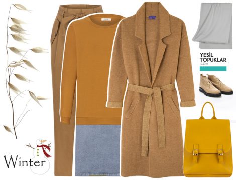 Soğuk kış günlerini hardalın sıcaklık hissi uyandıran tonları ile ısıtırken grileri minik detaylarda kullanarak harika bir denge oluşturabilirsiniz. Soğuk grilerin aksine sıcak griler ve doğal toprak renklerinin geniş renk paleti ile sakin, ferah ve ton sür ton kombinler oluşturabilirsiniz.
