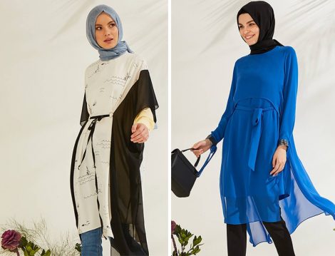 Tesettürlü kadınlar için yeni sezonun en sihirli parçası, hem kap hem tunik niyetine kullanan tasarımlar oluyor. Ayak bileklerine kadar inen boylarıyla dış giyim şeklini alan tasarımlar, belden bağlanan kuşaklarıyla form kazanarak tunik havasına da bürünüyor. Espadril ayakkabılar ile bir araya gelerek yazlık konforu yakalayan tunik – kap tasarımlarıyla eforsuz kombin yapmanın keyfini çıkarın.