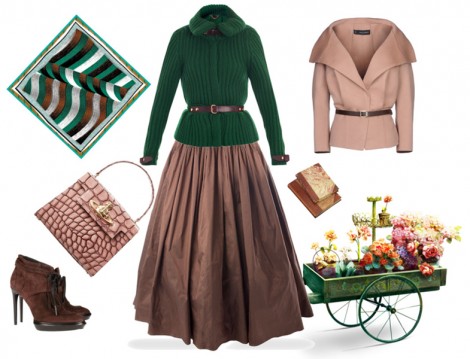 Bu sezon birbirine en çok yakıştırdığımız renklerin başında yeşil ve kahveler gelmekte. Bu iki rengin uyumu, firmaların koleksiyonlarına ilham kaynağı olmaktadır. Triko mevsiminin açıldığı şu günlerde kahverengi spor bir etek üzerine, kalın fitilli bir trikoyu tercih edebilirsiniz. Yine bu iki rengin harmanlandığı, asimetrik desenli bir ipek eşarbı da bu kombininizde kullanmanızı öneriyoruz.