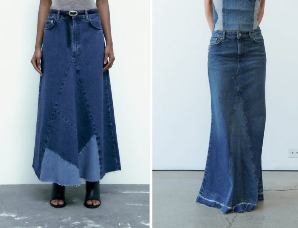 Bu arada upuzun boylarıyla dikkat çeken Zara marka denim etek modellerinde beş cep detayı ile birlikte kontrast kumaşlar da dikkat çekiyor. Önden fermuarlı ve düğmeli bu eteklere kadar patchwork dokunuşlarda çok yakışıyor.