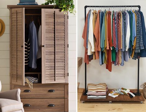 Günlük veya sık sık giydiğiniz kıyafetleri ayırmak için hijyenik ve estetik çözüm sunan yüzen askılık ve raflar da gardırop dışı düzeni için iyi bir alternatif. Önce gardırobunuzu tamamen boşaltıp temizleyin ve kullanmadığınız parçaları belediyelerin giysi toplama kumbaralarına bırakın, böylece ihtiyacı olanlara ulaşsın. Size de giyeceğiniz kıyafetlerle dolu ferah bir dolap kalsın.